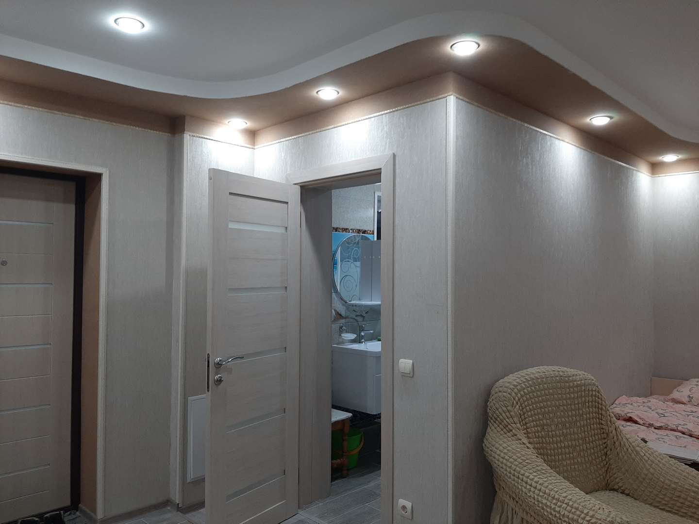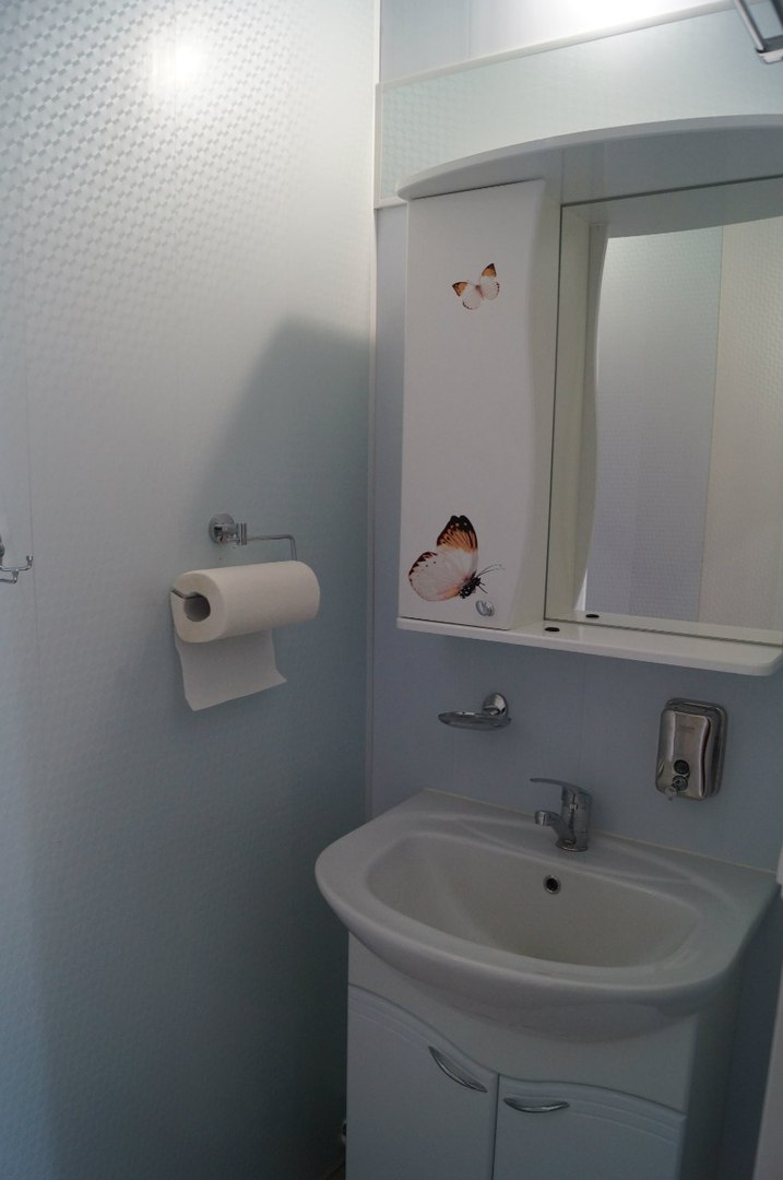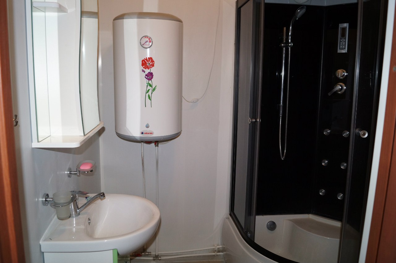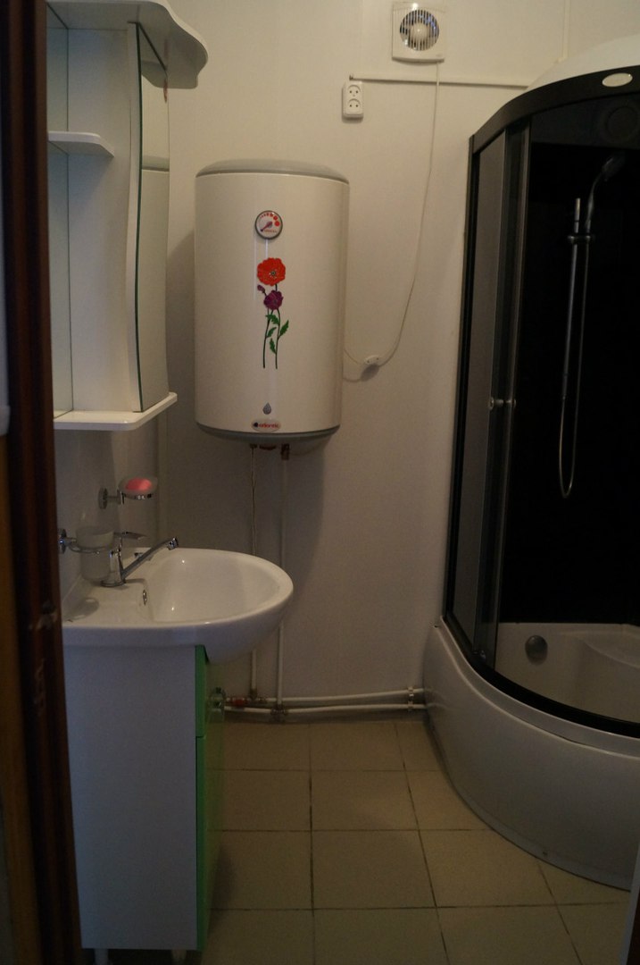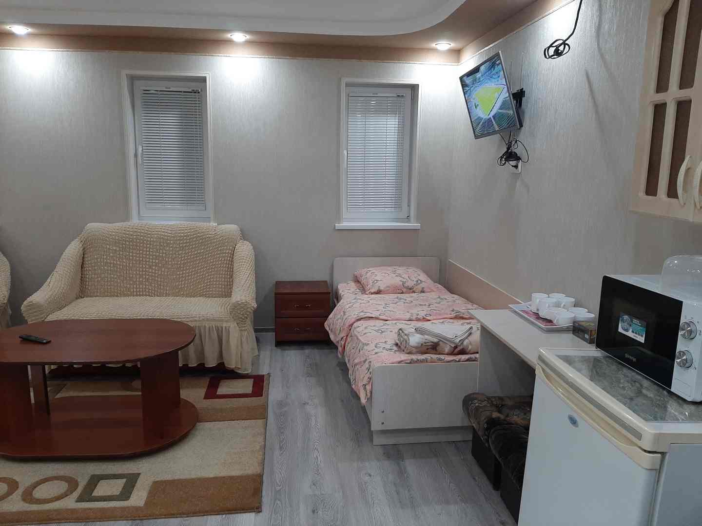 Апартаменты-студия с собственной ванной комнатой – уютный однокомнатный номер 30 кв.м с кухонным оборудованием (холодильник, микроволновая печь, электрический чайник), набором посуды, собственным санузлом (умывальник, унитаз, душ), рассчитанный на проживание одного/четырех человек. В номере три кровати, диван-кровать превращается в полноценное спальное место. Кондиционер и пол с подогревом создадут необходимые условия для комфортного сна и отдыха.