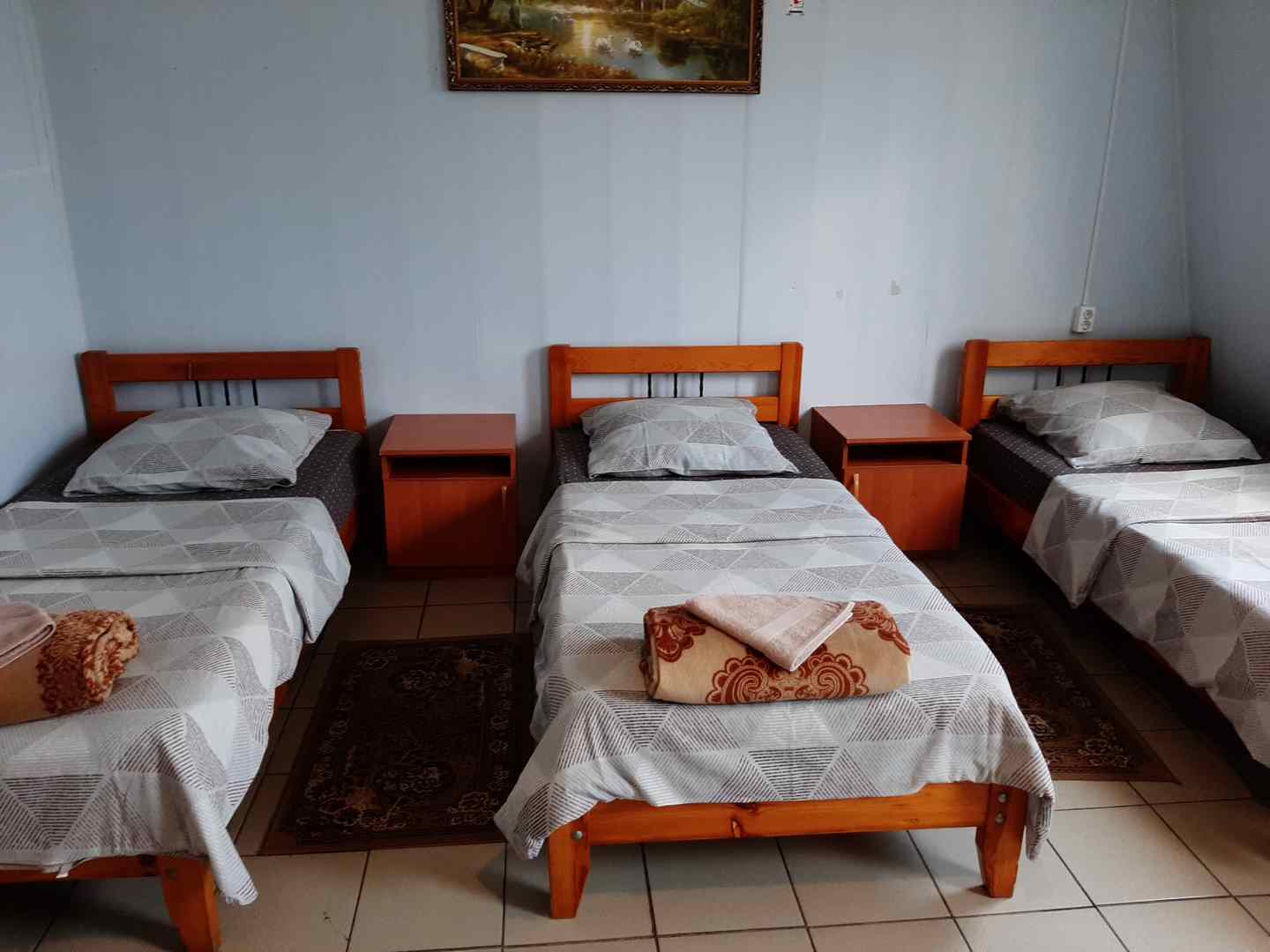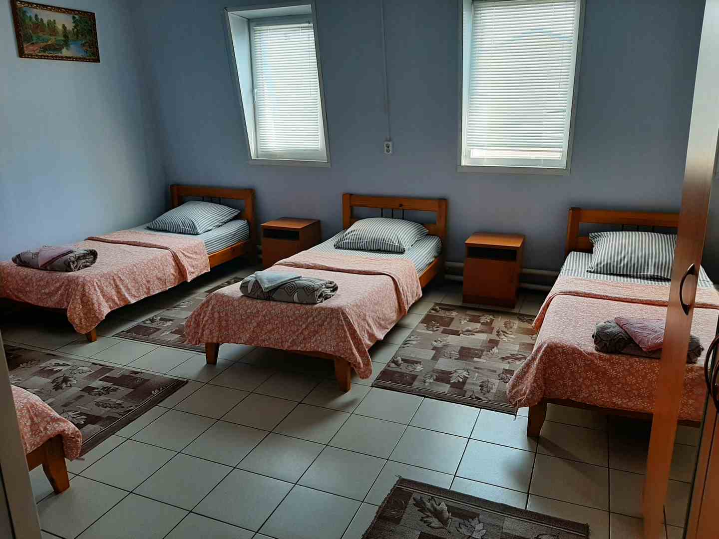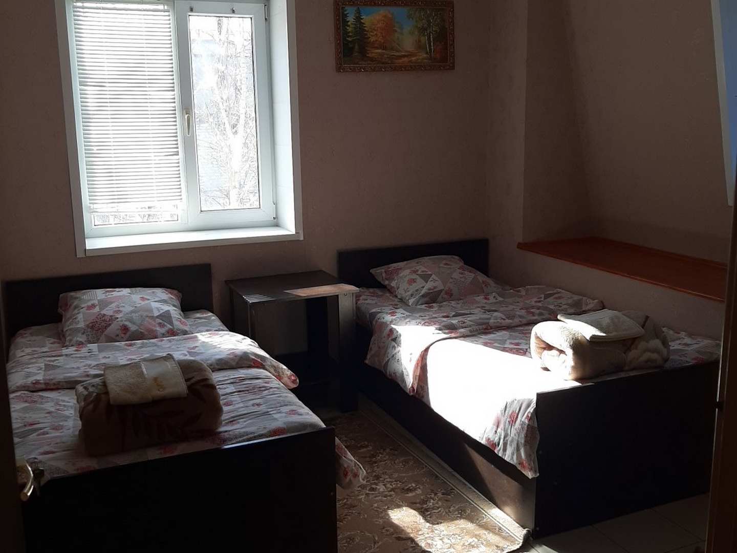 Приятный и достаточно просторный номер с двумя раздельнымикроватями, спальные места шире чем в обычном двухместном номере. За счет широких спальных мест номер подойдет семьям, по запросу возможно размещение в номере 1-2 детей до 6 лет на имеющихся кроватях без дополнительной платы. Удобства (душ, туалет) общие.
