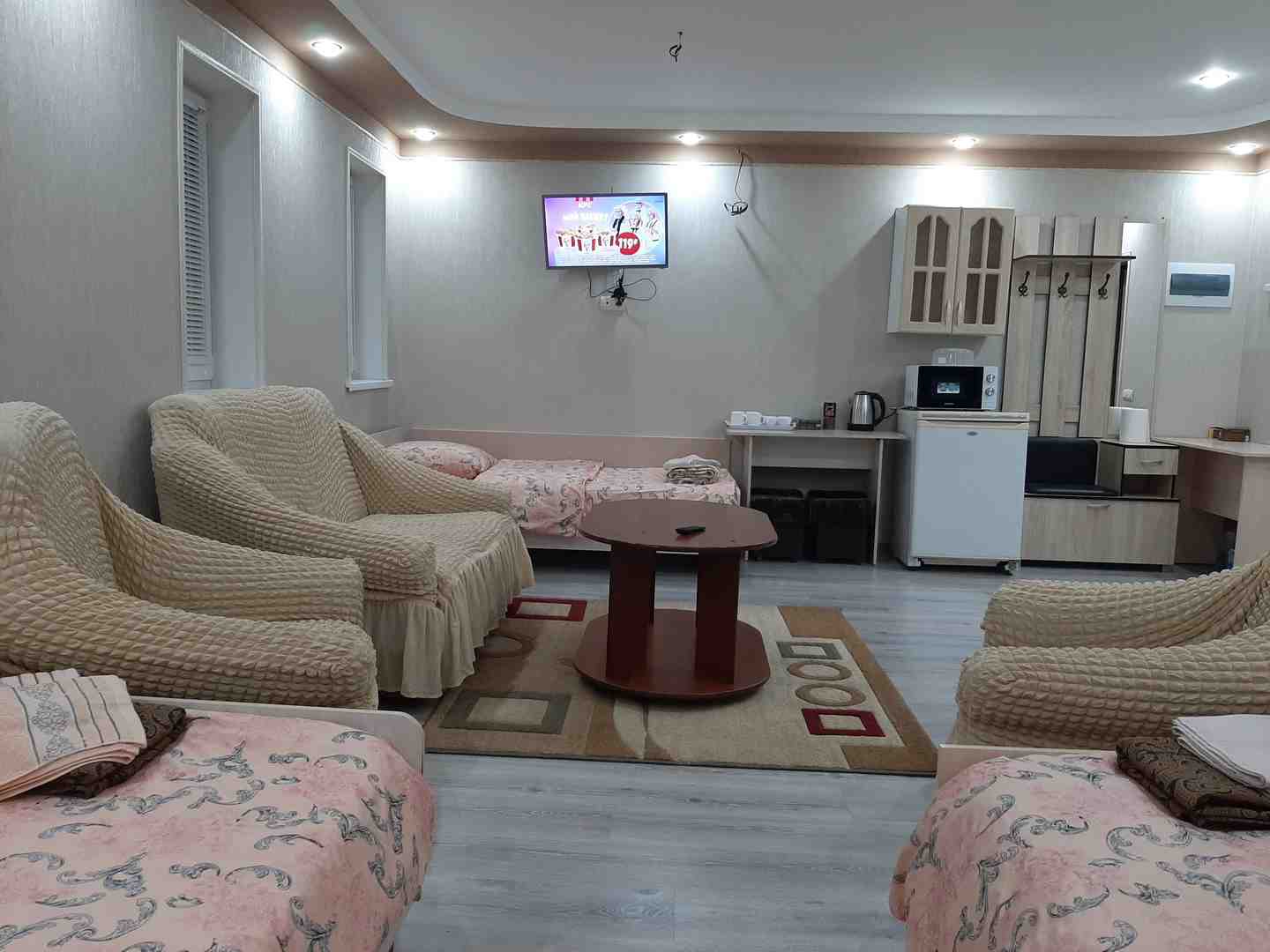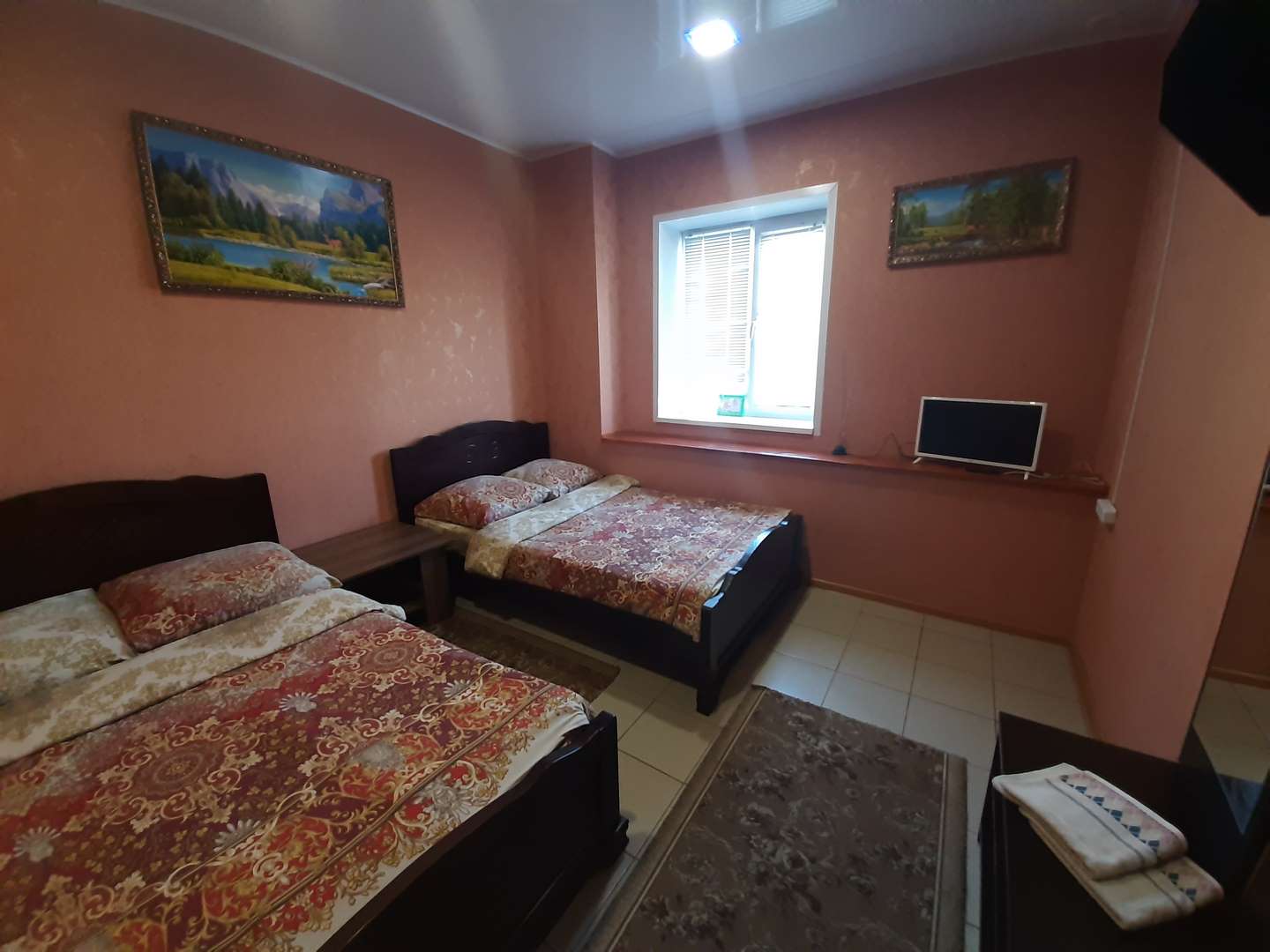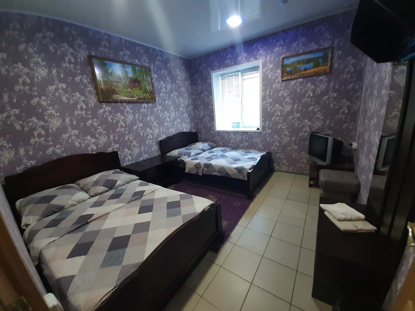 Просторный и светлый номер на 4-х человек, удобные спальные места, чистое и свежее постельное бельё. Удобства: душ, туалет общие. Приемлемая цена за номер позволит вашей семье или компании существенно сэкономить на проживании и потратить финансовые средства на интересные экскурсии и прогулки в нашем городе.